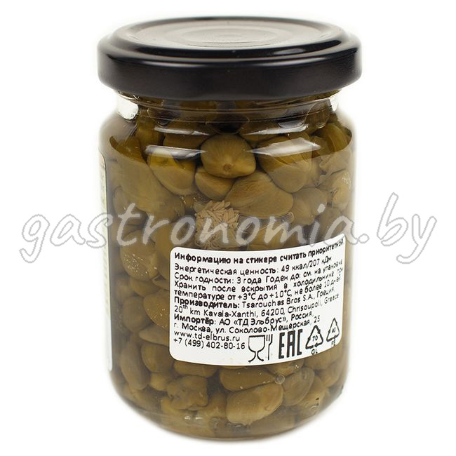 Состав: Каперсы, вода, соль, уксус, регулятор кислотности: Е330.