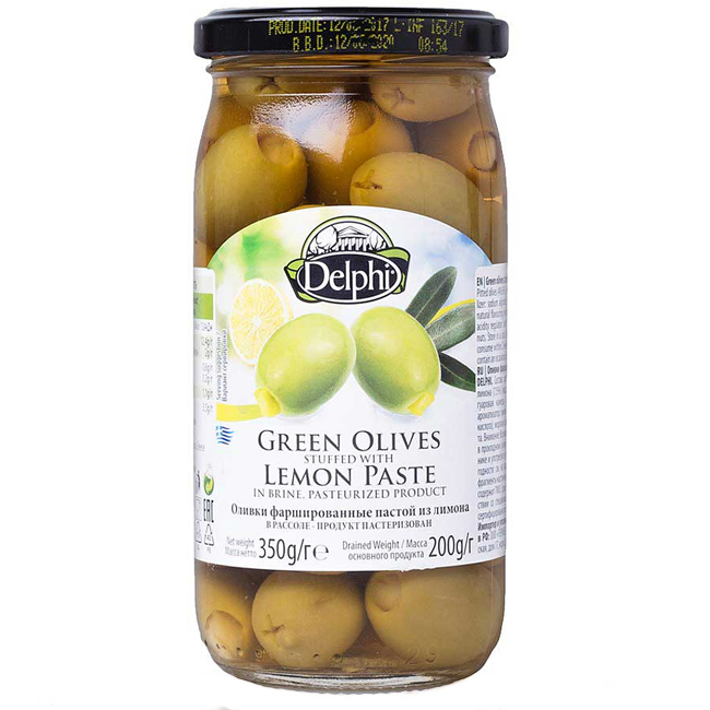 Оливки фаршированные пастой из лимона 350 г Delphi