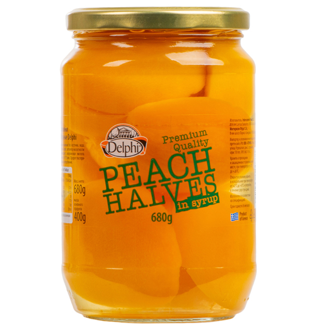 Персики половинки в сиропе отборные 680 г Delphi