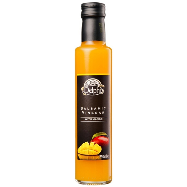 Эта восхитительная приправа была рождена из сочетания бальзамического уксуса известного греческого производителя и натурального манго. Его чистый, глубокий желтый цвет дополняет свежий аромат манго, а сладкий и насыщенный вкус обладает сдержанной кислотностью и длительным послевкусием.