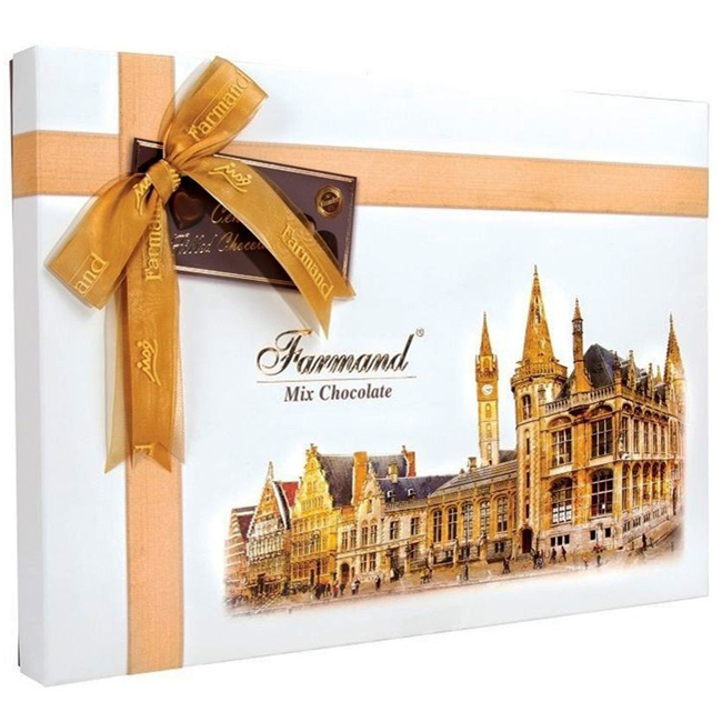 «Farmand» London Assorted — ассорти шоколадных конфет, которые понравятся и детям, и взрослым. Они привлекают внимание с первого взгляда стильной коробкой с изображением известной достопримечательности. Не менее интересно содержимое упаковки — конфеты созданы из нежного молочного шоколада, а разнообразные начинки позволяют найти свой идеальный вкус. Конфеты можно подать с горячими напитками — чаем, кофе, латте, капучино или молоком. Также они гармонично сочетаются с тихими и игристыми винами.