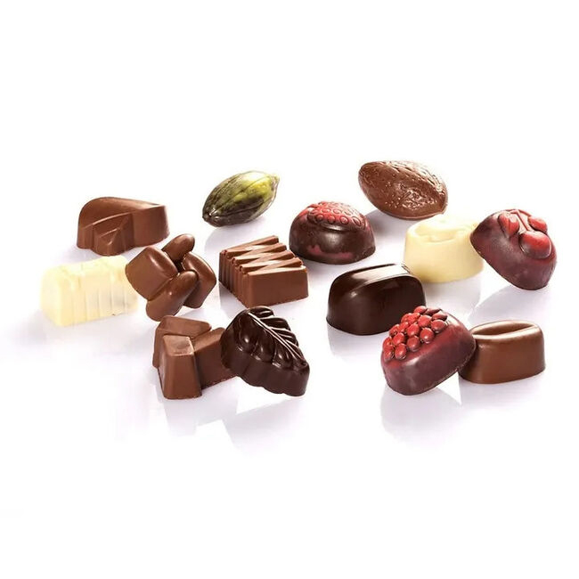 Состав: молочный шоколад, темный шоколад, белый шоколад, сахар, масло какао, сухое молоко, какао-масса, эмульгатор (растительный лецитин), натуральный ароматизатор (ваниль) Внутреннее наполнение; ганаж, нуга ганаж, карамель, (сахар, какао масло, сухое молоко, какао-масса, пастеризованное молоко, масло, мед, Миндальное масло, миндаль, фундук, фисташки, кофе в зернах, эмульгатор (растительный лецитин), натуральный ароматизатор (ваниль, апельсин, нуга).