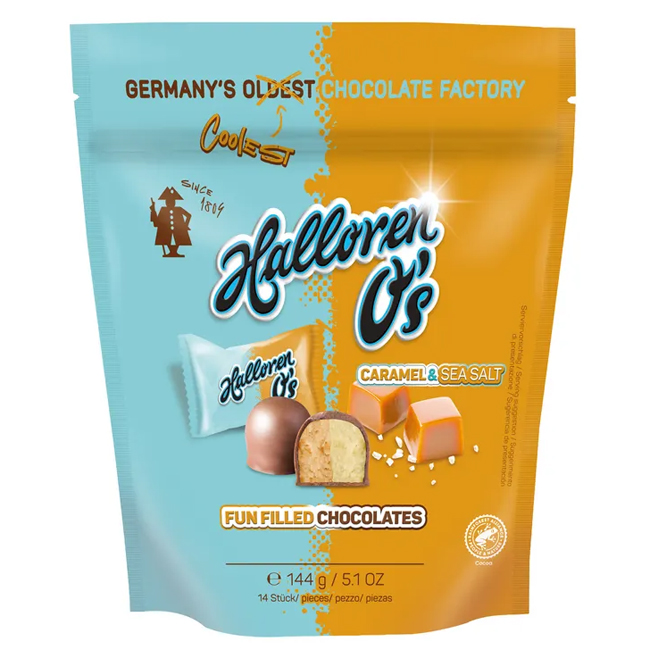 Конфеты Halloren O's с начинкой "Карамель и морская соль" представляют собой изысканное сочетание освежающей нежной начинки со вкусом печенья OREO и насыщенного молочного шоколада. Особенностью конфет Halloren O's является гармоничное сочетание текстур: хрустящая тонкая шоколадная оболочка и мягкая, тающая во рту кремовая начинка. Такой вкус конфеты, облаченной в оригинальную круглую форму, оценят любители изысканных сладостей.