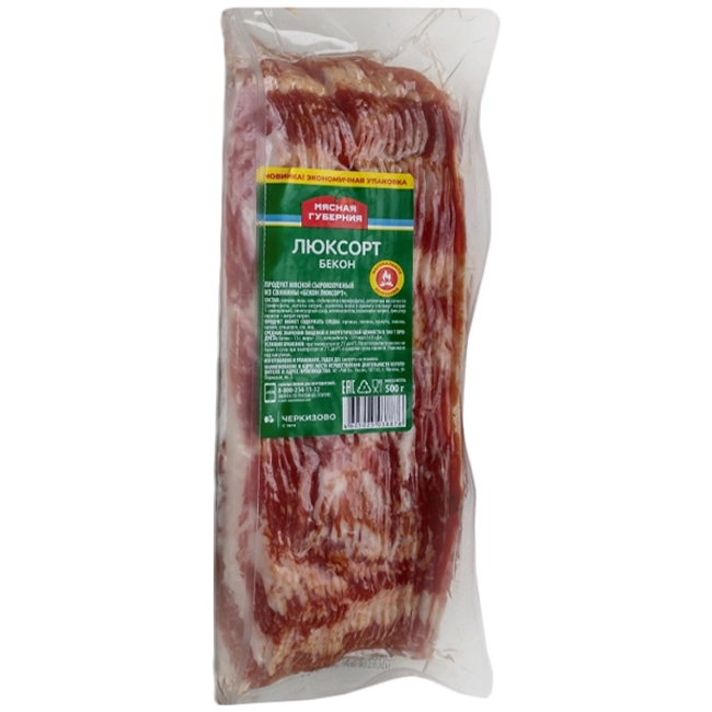 Бекон Люксорт сырокопчёный (нарезка) 500 г Мясная Губерния
