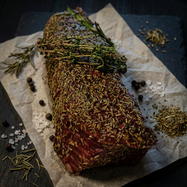 Замаринованное и скрученное в рулет Карпаччо из говядины. Вам остается только тонко его нарезать, заправить соком лимона, оливковым маслом, солью и черным перцем. Отлично сочетается с рукколой и бальзамическим уксусом. Идеально с красным вином.