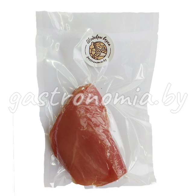 Состав: мясо птицы кусковое, соль пищевая поваренная йодированная, смесь посолочно-нитритная «Универсальная» (соль поваренная пищевая выварочная экстра «Полесье» (содержит агент антислеживающий Е536), фиксатор окраски Е250, йодат калия), комплексная пищевая добавка F-Mix Итальянская (регулятор кислотности Е575, ароматизатор пищевой, декстроза, смесь натуральных экстрактов, усилитель вкуса и аромата Е621, антиокислитель Е316, антислеживатель Е551).