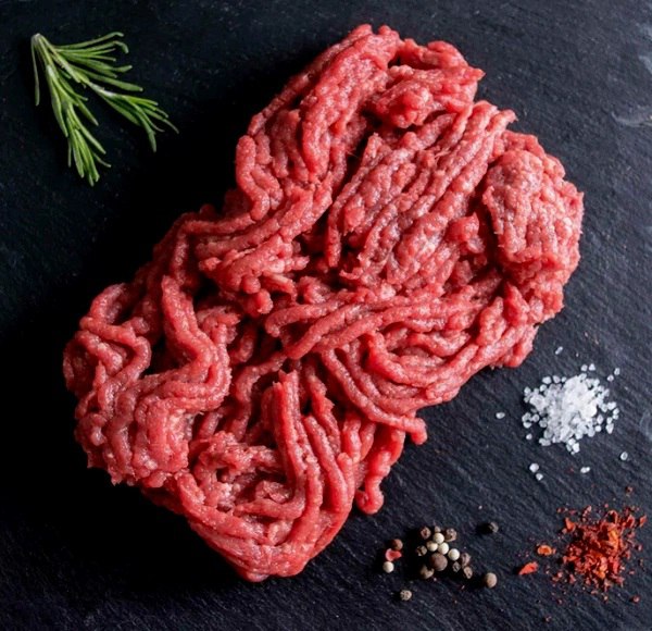 Состав: Полуфабрикат мясной рубленый. Состав: котлетное мясо говяжье, комплексная пищевая добавка Ра-Фриш (регулятор кислотности ацетат натрия Е262, цитрат натрия Е331, пищевая соль, экстракты специй (лимон)).