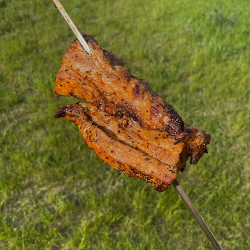 Состав: Полуфабрикат мясной мелкокусковой мясокостный из свинины. Состав: рёберные пластины свиные, соус на основе растительных масел "Густози ла пиканте" (рапсовое масло, пряности (перец чили, перец черный, паприка красная, экстракт дрожжей, соль, оливковое масло, сахароза, ароматизатор"Мясо"), комплексная пищевая добавка Ра-Фриш (регулятор кислотности, ацетат натрия Е262, цитрат натрия Е331, пищевая соль, экстракты специй, лимон)).