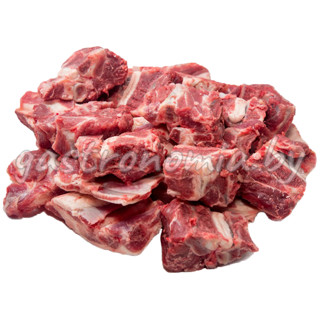 Состав: Полуфабрикат мясной натуральный мелкокусковой мясокостный из говядины Состав: мясокостные кусочки, изготовленные из шейной, грудной, поясничной, спинной, крестцовой частей, с содержанием мякотной ткани..