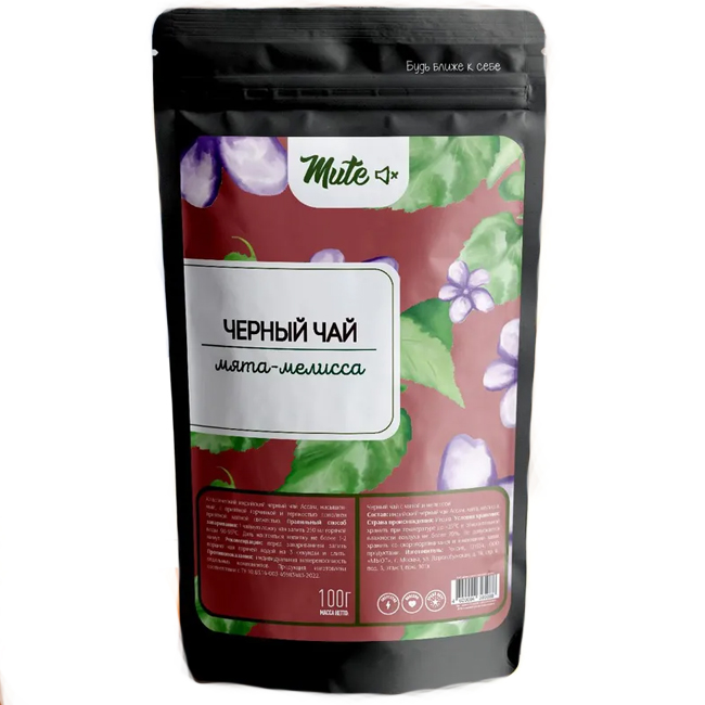 Чёрный чай c мятой и мелиссой 100 г Mute