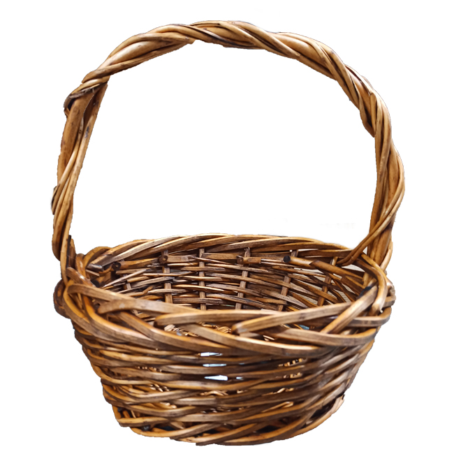 Корзина плетеная из ивовой лозы натурального цвета. Может быть использована: для упаковки подарков, цветочных композиций; для хранения и транспортировки различных предметов и продуктов; как декоративный элемент интерьера.