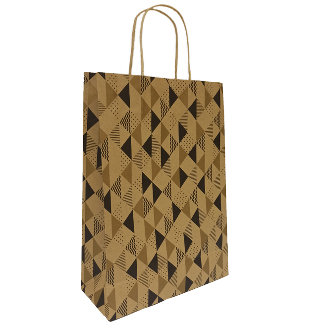 Подарочный пакет "Черные и золотые треугольники" 240х350х100 крафт