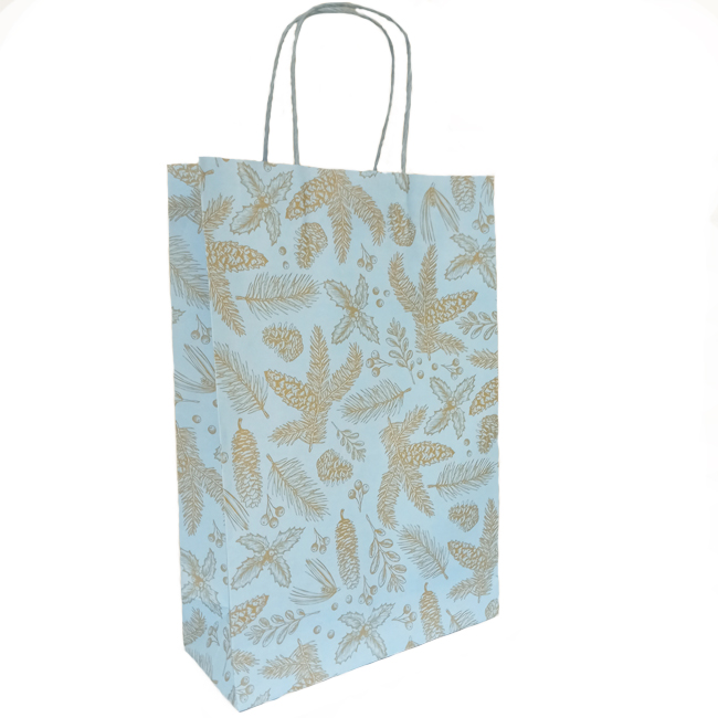 Подарочный пакет "Золотая хвоя на голубом фоне", 24см х 35см х 10 см.