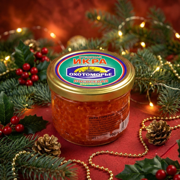 ПРЕДЗАКАЗ - Икра красная лососевая (горбуша) 100 г ОХОТОМОРЬЕ