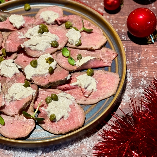 Блюдо из тонко нарезанных кусочков маринованной мраморной говядины, приправленных крем-соусом, одной из составляющих которого является тунец. Является холодным блюдом или закуской, типичной для региона Пьемонт. Рекомендуемый способ приготовления: Мясо выкладывается на сервировочную тарелку, сверху поливается соусом прямо перед подачей на стол, декорируется каперсами и микрозеленью.