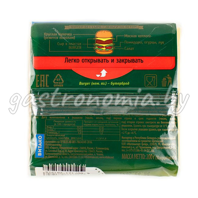 Сыр плавленый Чеддер BURGER (слайсы) 200 г ВИТАКО