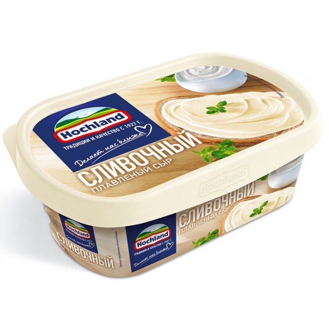 Сливочный плавленый сыр Hochland обладает нежным вкусом и тает во рту. Он изготавливается из классического натурального сыра. И на ломтике хлеба, и на хрустящем крекере он станет отличным началом вашего дня. Кроме того, сливочный плавленый сыр Hochland идеально подходит для кулинарии – как для горячих, так и холодных блюд. Он придает блюдам сливочный вкус и тягучую консистенцию сыра.