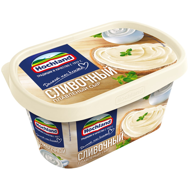 Сливочный плавленый сыр Hochland обладает нежным вкусом и тает во рту. Он изготавливается из классического натурального сыра. И на ломтике хлеба, и на хрустящем крекере он станет отличным началом вашего дня. Кроме того, сливочный плавленый сыр Hochland идеально подходит для кулинарии – как для горячих, так и холодных блюд. Он придает блюдам сливочный вкус и тягучую консистенцию сыра.