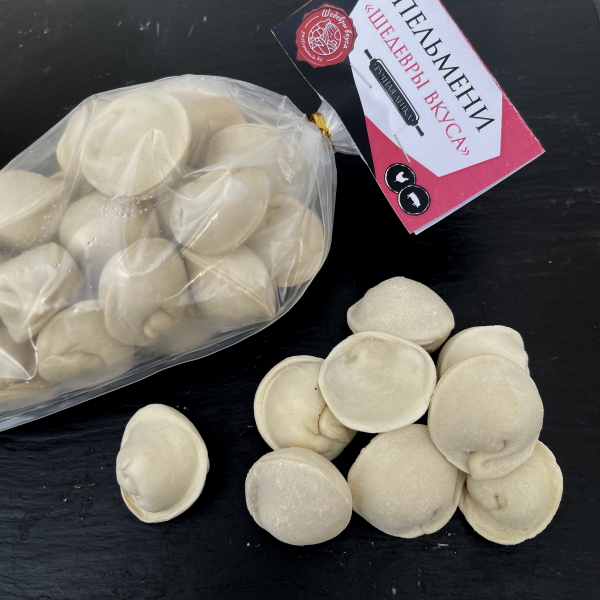 Пельмени "Шедевры вкуса" со свининой и курицей ручной лепки 500 г замороженные