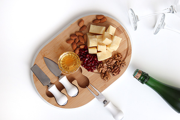 Существует правило: чем слаще напиток, тем пикантнее сыр. Шампанское можно подавать с жирными сырами: яркость пузырьков и газированность хорошо проникают через жировой слой сыра. Подойдут такие сыры, как шевр, бри, горгонзола. Букет выдержанных игристых напитков удачно подчеркивает молодой чеддер. А камамбер станет идеальной закуской к любому игристому.
